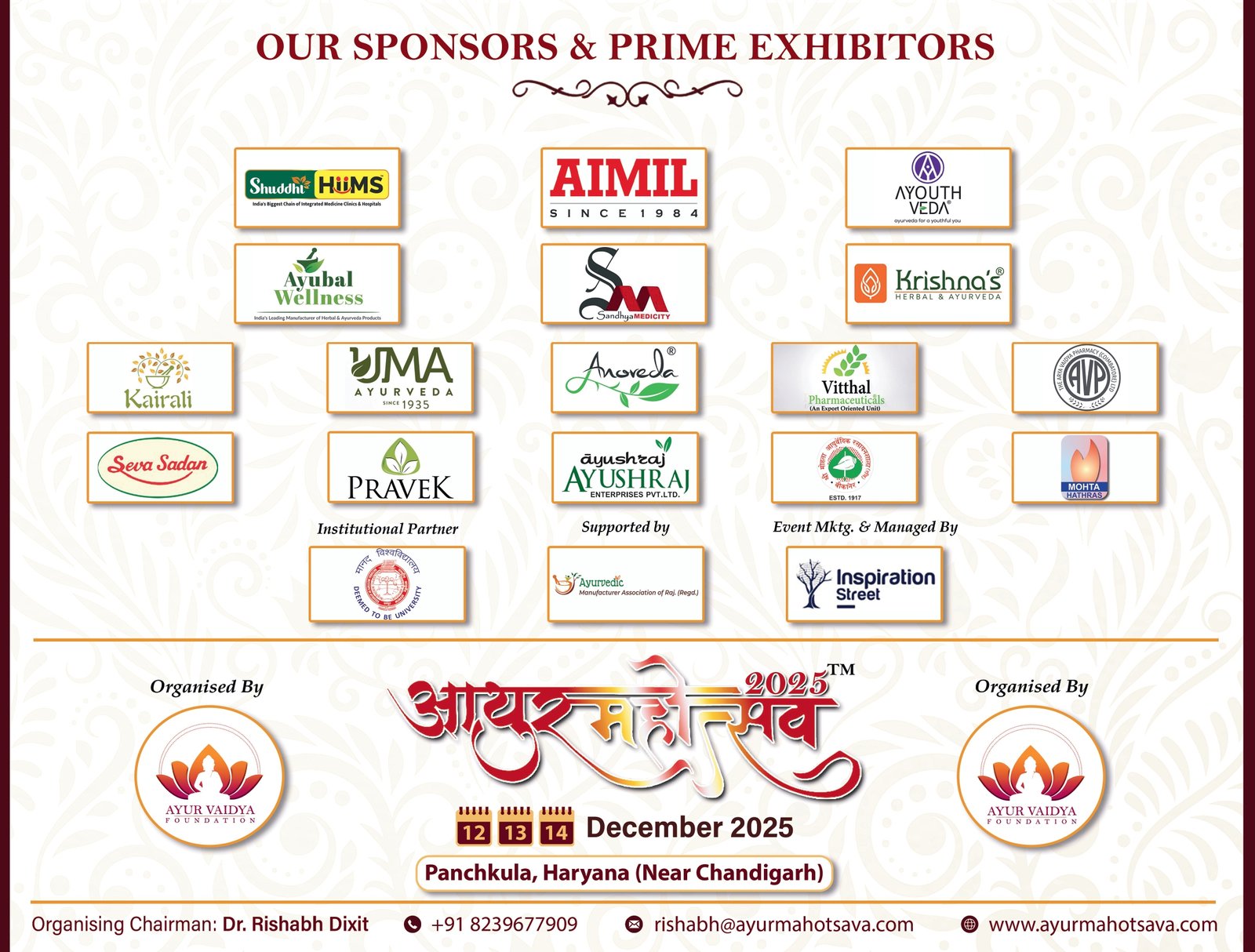 Ayur Mahotsava 2025 brings together students, practitioners, and industry leaders to explore the future of Ayurveda. It serves as a hub for knowledge exchange, research discussions, and networking with top experts. Leading Ayurvedic pharmaceutical companies will showcase their latest innovations and products. Whether you're a student, doctor, or exhibitor, this event is your gateway to the evolution of Ayurveda. Join us and be part of this transformative journey!